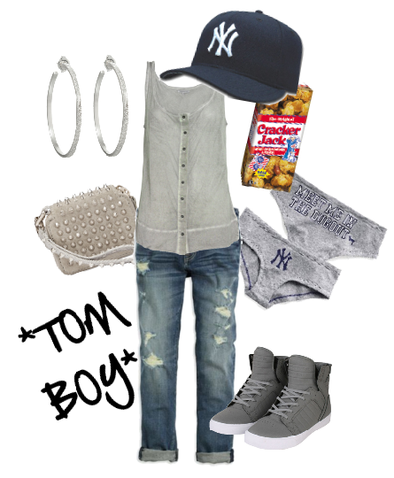 I am thinking the ultimate Tom Boy look mixed with a little glam to feminize the look.