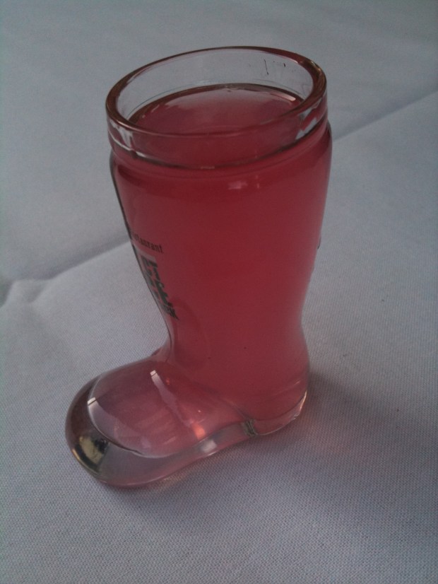 3. Boot shot glass from East Side restaurant in New Britain that I received for donating to CT Race in the Park, a breast cancer foundation. The shot was pretty good too- a Pink Lemonade shot! East Side is a great place to get a true experience of German culture & food! www.eastsiderestaurant.com