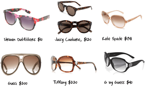 - Splurge on the classics and set a budget on the trendier glasses. It’s always nice to have one designer pair of classic sunglasses in a neutral black/tortoise/brown color. However, if you want to cute pink aviators or floral sunglasses, go with a store like Forever 21 where you can get them for like $10!