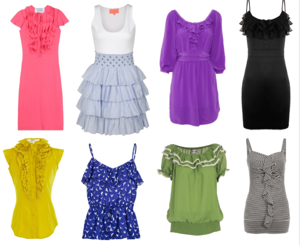 Ruffles are a timeless, feminine trend. If you want to make a masculine outfit more pretty, add some ruffles. I like to wear a ruffled dress shirt underneath a blazer to make the look more feminine. Sometimes a simple grey suit can look too plain and boyish so the ruffles do the trick. Here are some ideas to add ruffles to your life. From subtle to extreme, there is a ruffle out there for everyone!
