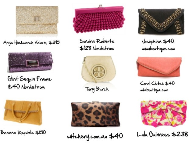 Having a beautiful selection of clutches is clutch these days. Especially if you go out often like me. Clubs, weddings, bars, and parties are all in need of the perfect clutch to fit all of your neccessities. My clutch consists of my favorite lip gloss, license, cash (sometimes debit card), and gum. What’s in your clutch? These precious little handbags can be the ultimate accessory to your otherwise bring outfit. Take a look at my picks. xoxo