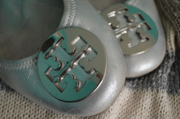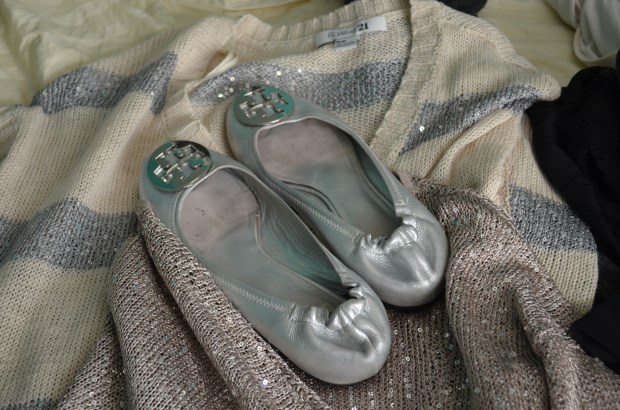 {sweaters with some shimmer & of course, classic Tory Burch flats}