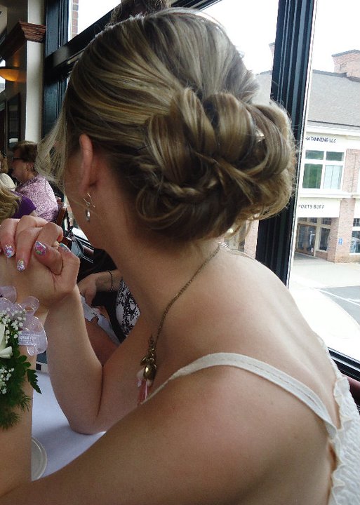 {simple chic updo with a braid. and Sally Hansen nail strips to add some color}