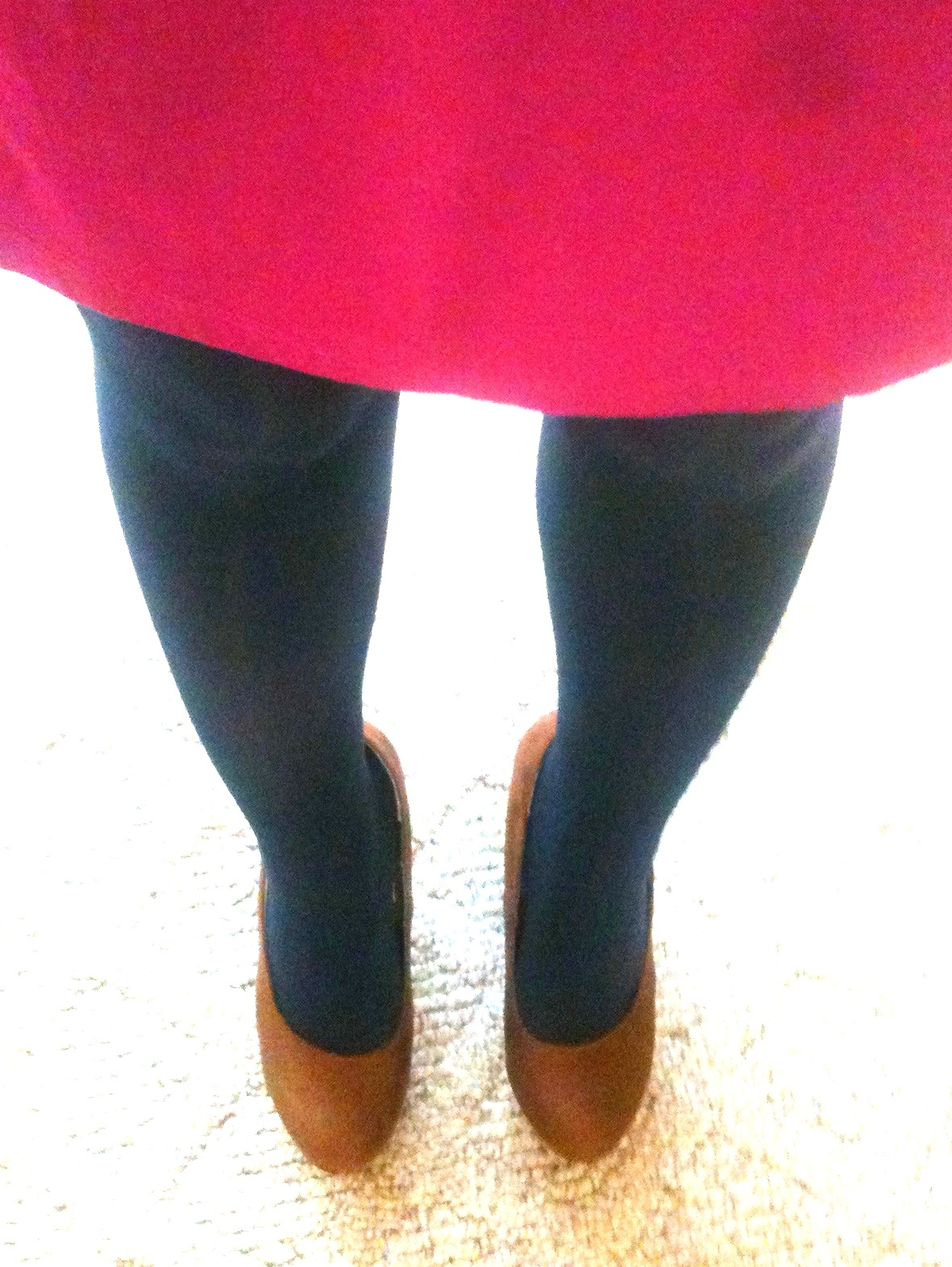 Tights are the perfect way to add a splash of color while keeping those beautiful legs nice & toasty. I am wearing some today for work but I went kind of modest with navy blue.  I found them at Target for $8!  I’d LOVE to see how you guys have paired color tights.. Please share via facebook!