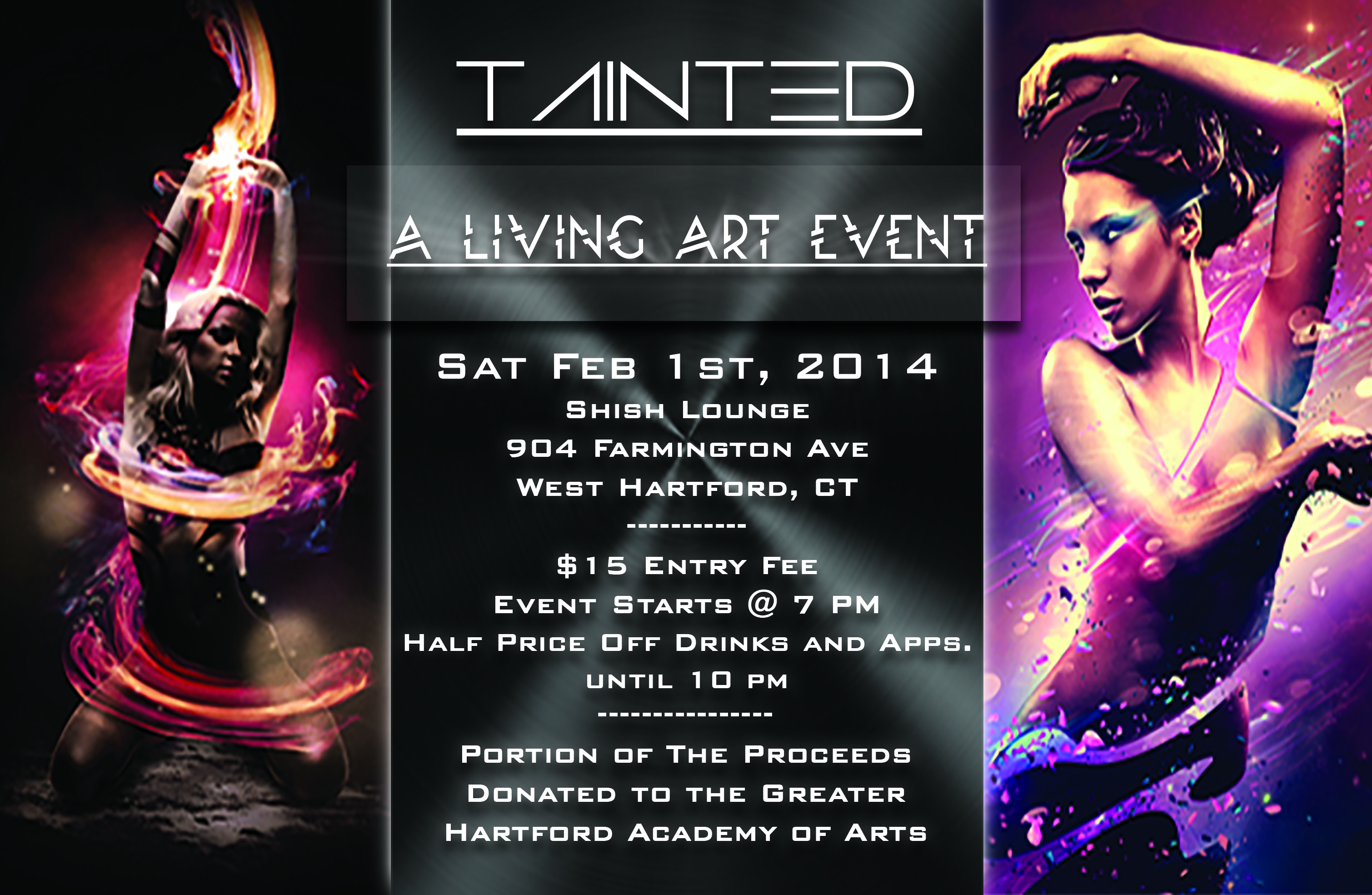 Tainted is Launching their makeup company into the community and to celebrate, the co-Owners Andrea Cortez and Elizabeth Cardenales are organizing and hosting the Living Art Event on Saturday Feb. 1st at Shish Lounge in West Hartford. The Event is all about artists celebrating creativity, collaboration, and community. The charitable event will feature: body painters, LED hula Hoopers, Tattoo artist, Local Artists displaying art work, dancers, models and a collaboration with multiple businesses within our area. A portion of the proceeds will going to The Greater Hartford Academy of the Arts.