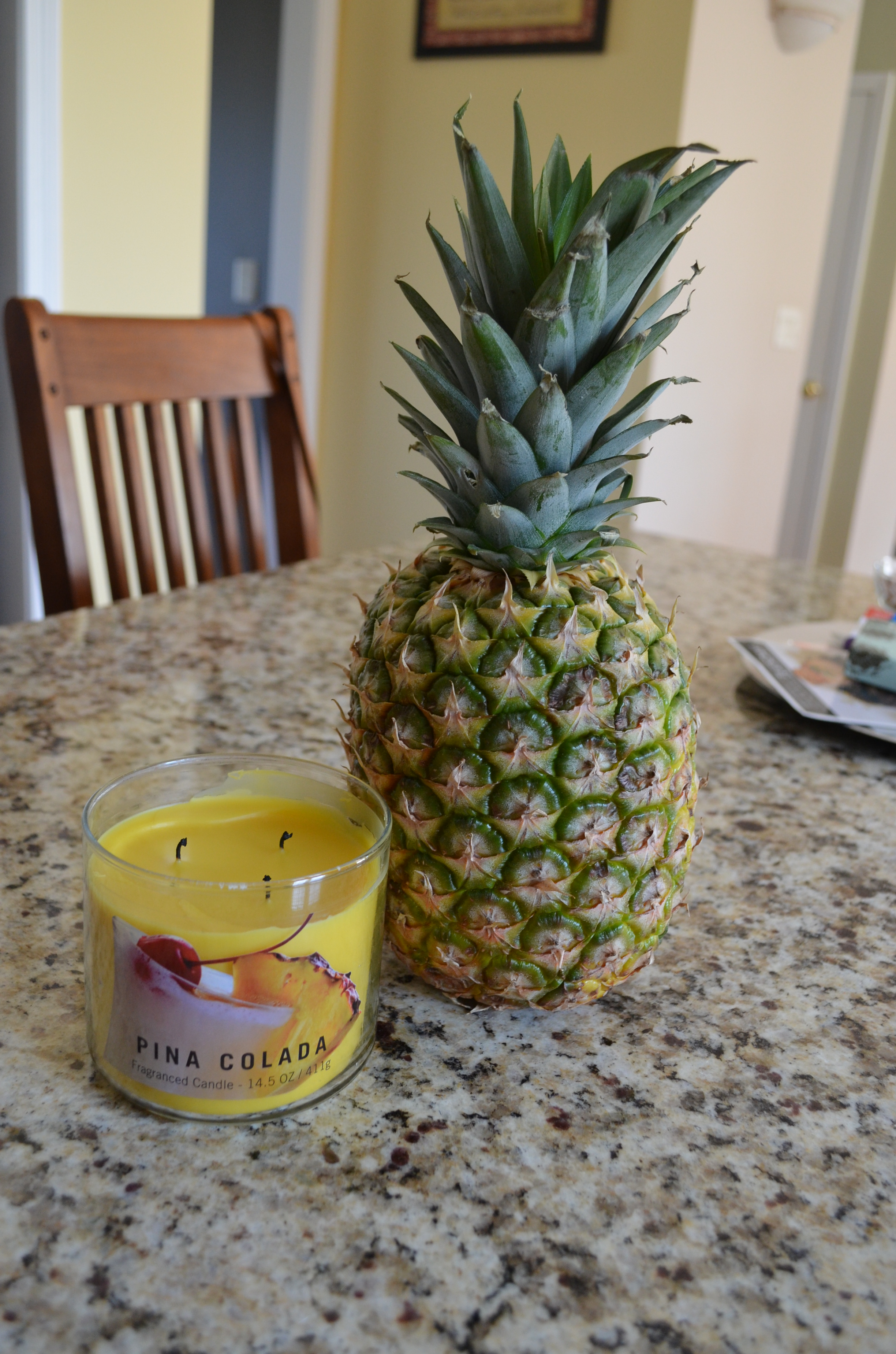 {Favorite candle that smells like Hawaii and fresh pineapple as decor & dessert}
