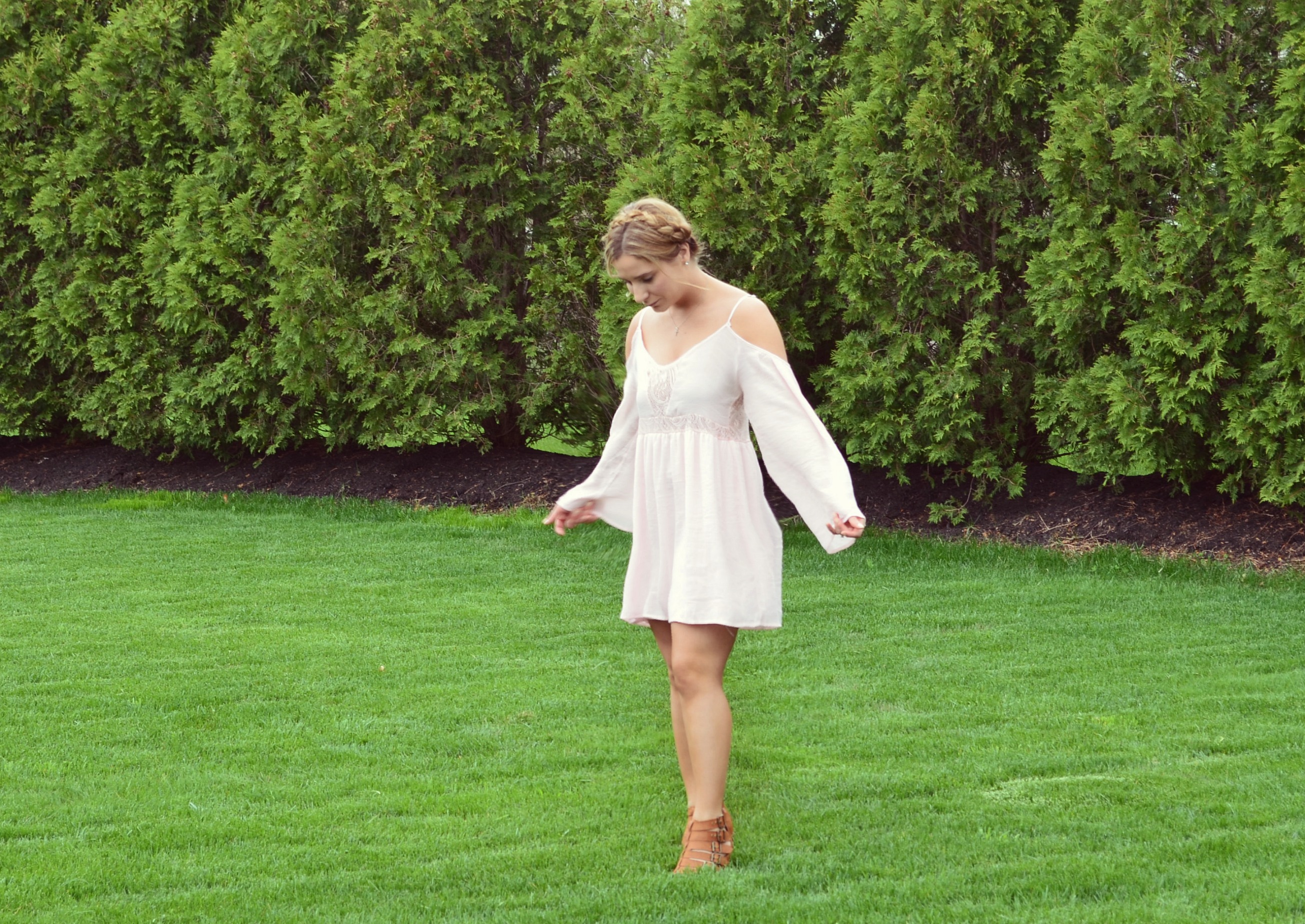 {Talia Dress-Blush Dress: Nasty Gal | Cognac Duff Wedges: Madden Girl| Cross necklace: Florence, Italy}