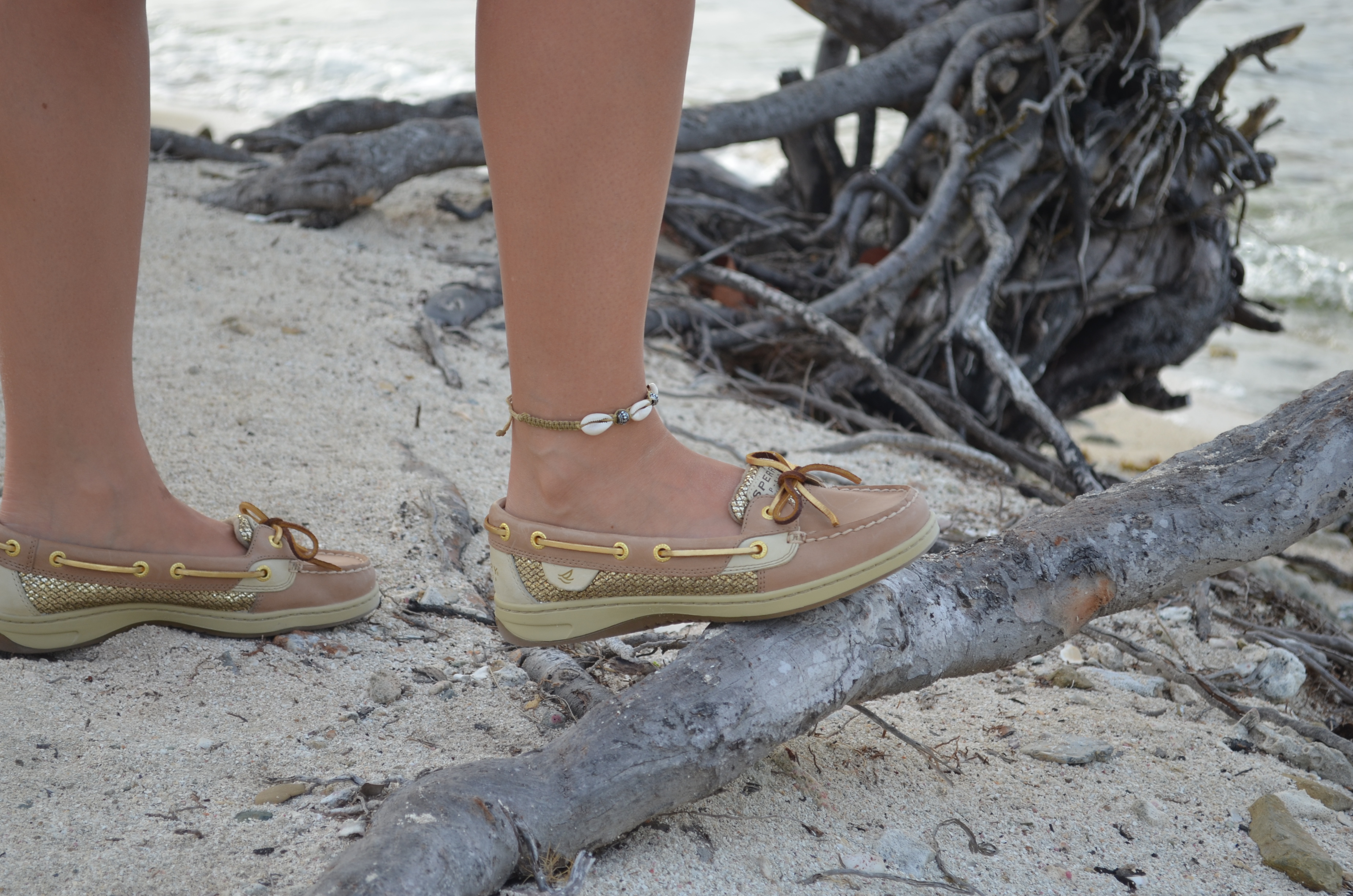 I just returned from the Virgin Islands and was so thankful that I packed comfortable shoes, especially these adorable gold-glitter Sperry Topsiders. These chic boat shoes were perfect with sundresses and dressy short, yet I was still able to hike on rocks, especially useful when hiking to see the Baths in Virgin Gorda (stunning!)