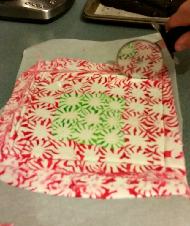 Directions: Pre-heat oven. Place the unwrapped candies about a quarter inch apart on the parchment lined baking sheet in desired shape and size.  Place in the oven, checking after about five minutes to see if the candies have melted into each other. Once the mints have melted into each other, remove from oven to a cooling rack.