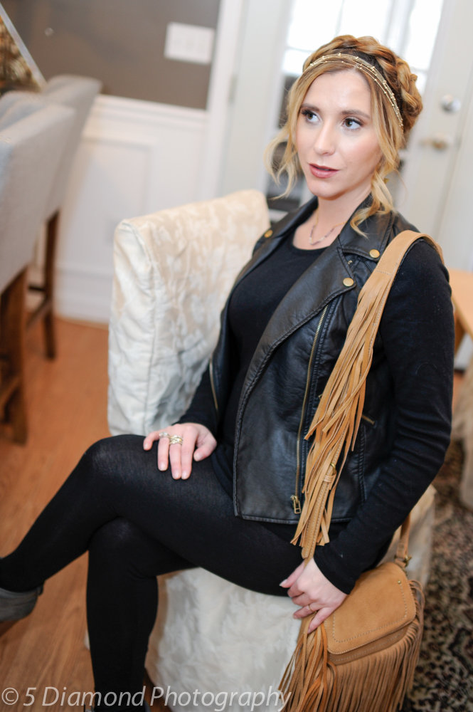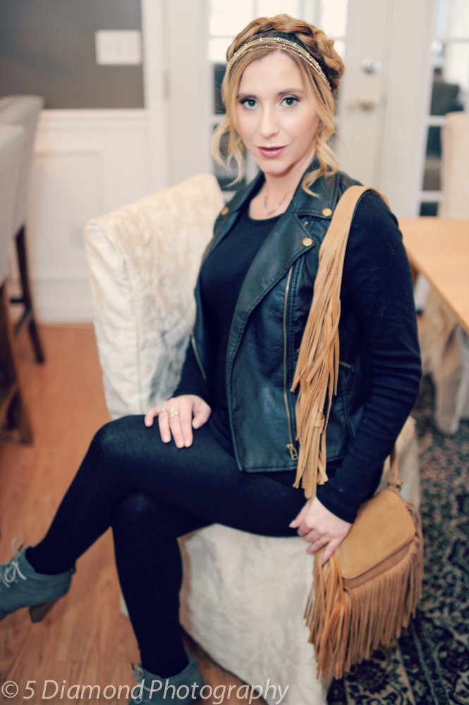 Sometimes, nothing beats a chic all black look. Although a classic look, adding a fun fabric or color can bring an otherwise classic outfit to feel a little more trendy. This adorable leather fringe bag that I found on clearance at Marshall’s did just that, added a little flare to bring this look to life.Β The slimming of darker colors also helps my quickly rounding shape π