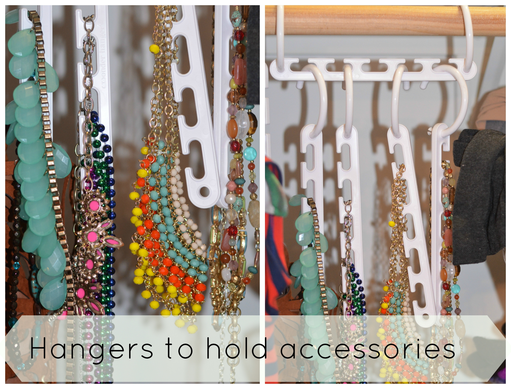 My accessories were tucked away in a drawer and I really wanted them on display so when I get dressed I can see what my options are. These space-saving hangers are perfect to hang accessories right in your closet and these are under $10.