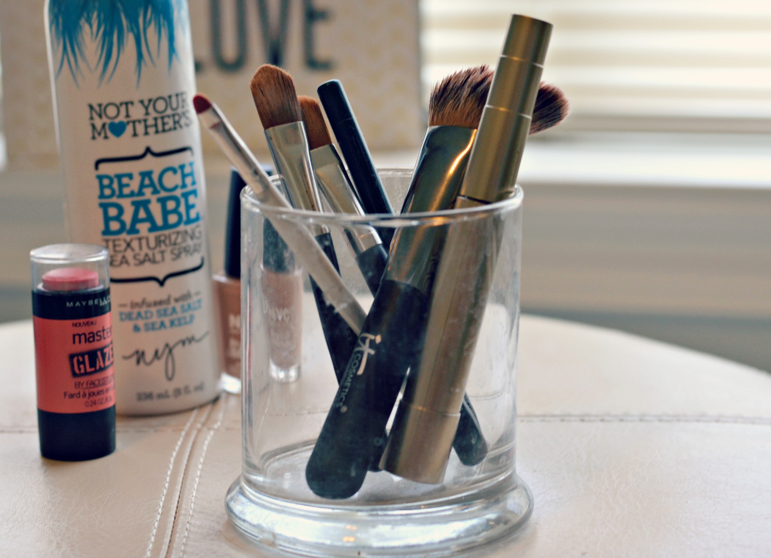 My makeup brushes were just kind of sprawled across my counter and I remembers I cleaned out the remaining wax of a candle jar. This is the perfect way to organize makeup brushes or anything for that matter. What do you do to stay organized?
