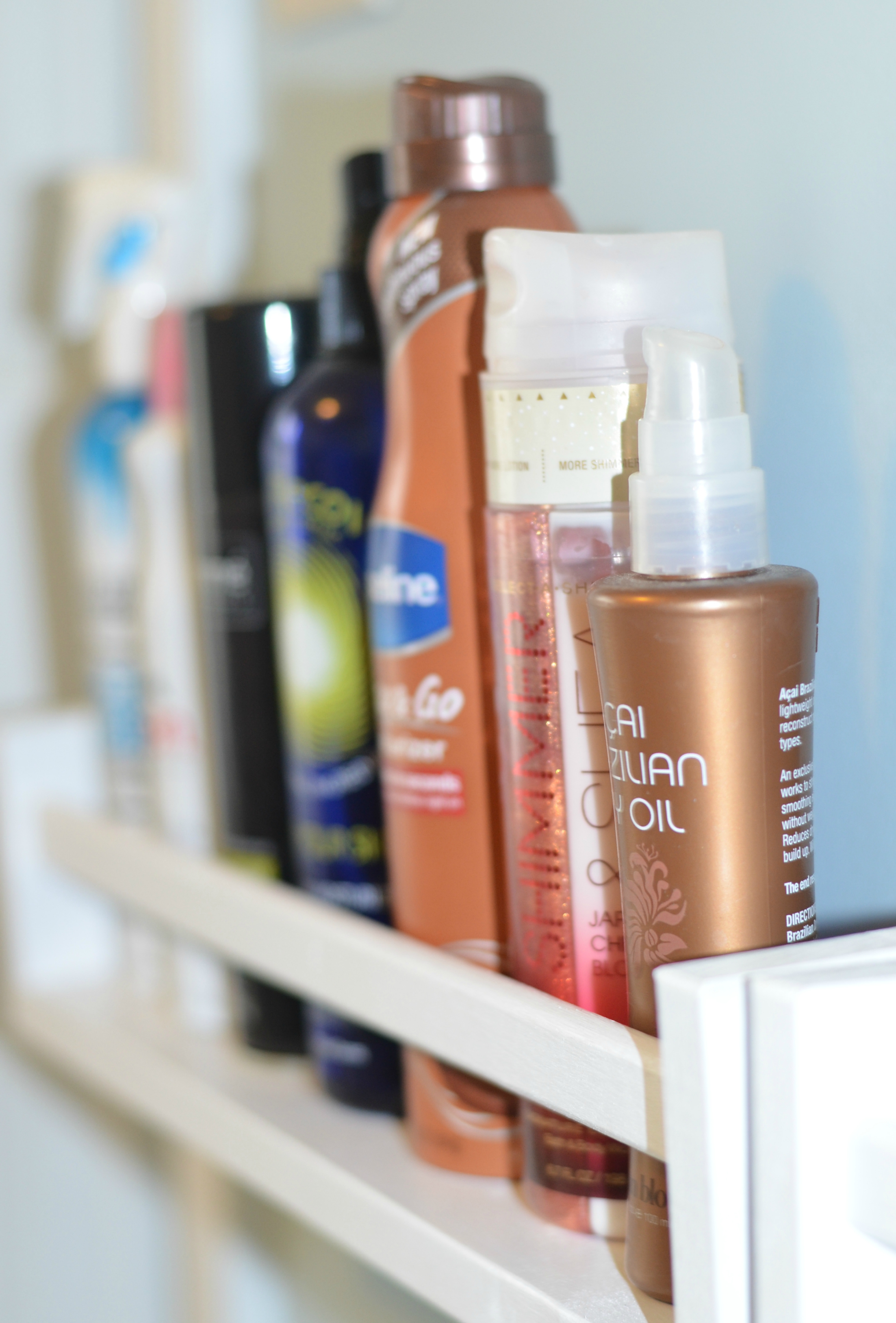 I’ll admit, I am not the most organized person. However, once I find a system that works, I find it much easier to stay organized so I got motivated and organized my beauty products and accessories with just a few bucks. I LOVE these Ikea spice racks for organization. I painted them white, hung them up in my bathroom and it is the perfect place to organize skin and hair products. These are only $3.99!