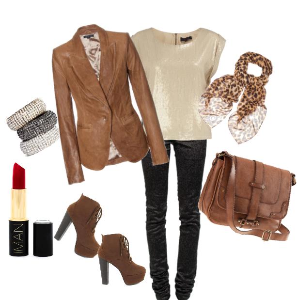 Loving this Rachel Zoe leather jacket with sparkly accessories. Perfect Thursday night outfit!