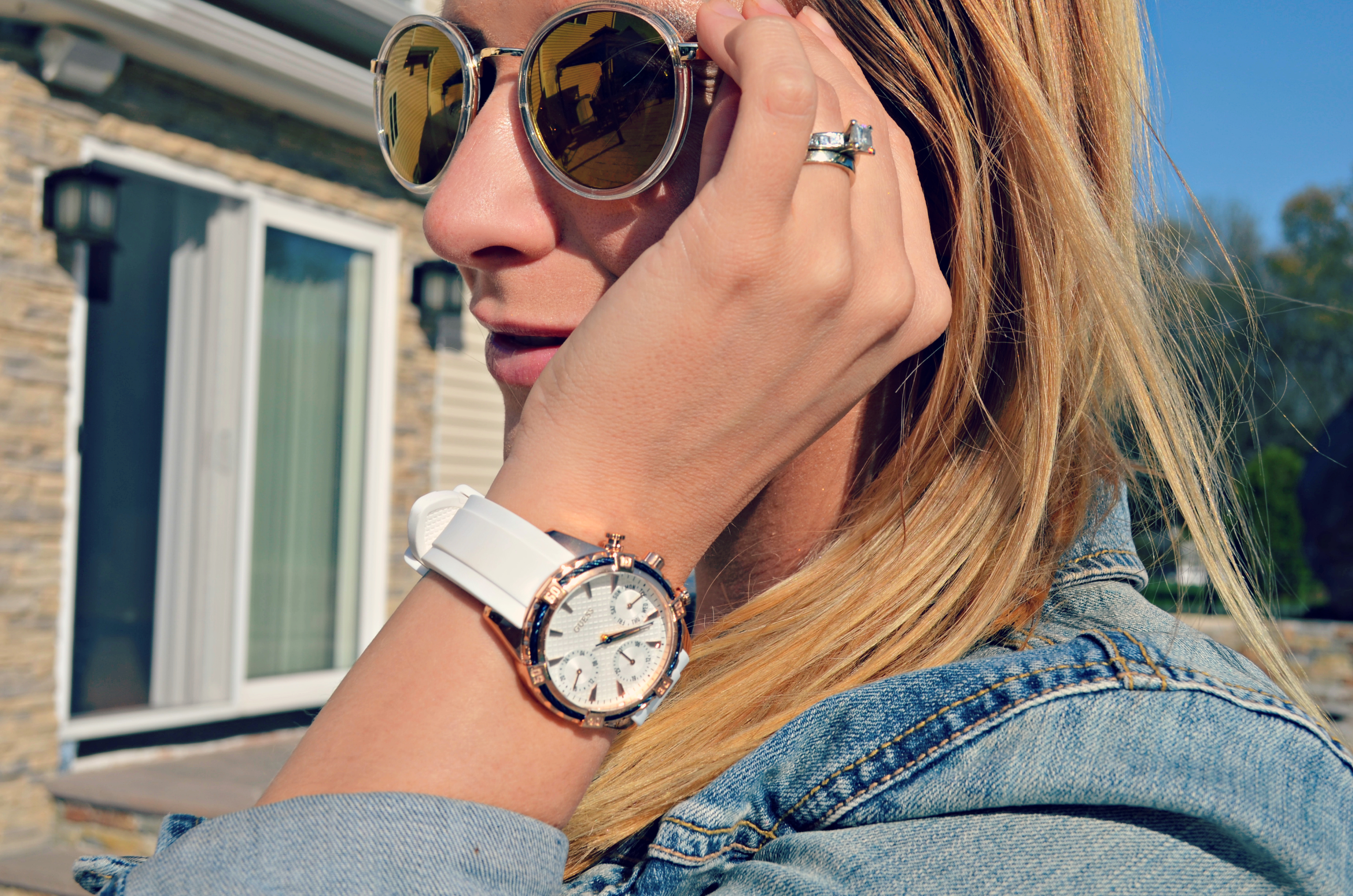 With exactly 3 weeks left until my due date, I am at the point where when I get dressed in the morning, I wear “whatever fits”. The great thing about this gorgeous weather is that maxi dresses are the perfect, comfortable solution for this late in pregnancy. The pool is open, the sun is shinin’ and I am rockin’ this awesome watch gifted from Guess- the perfect summer watch since the band is silicone & waterproof and has gorgeous rose gold accents.
