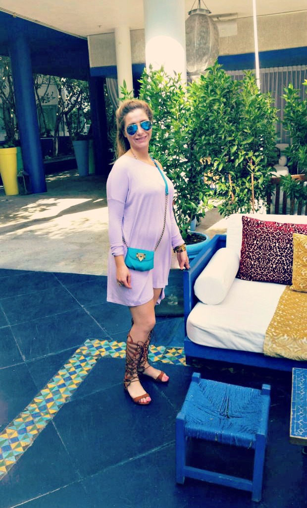 {Lavender Basic Dress c/o Necessary Clothing| Butterfly Gladiator sandals c/o Necessary Clothing| Blue Mirror sunglasses: Ray Ban| Barcelets: Alex & Ani| Boyfriend watch c/o Guess Watches}